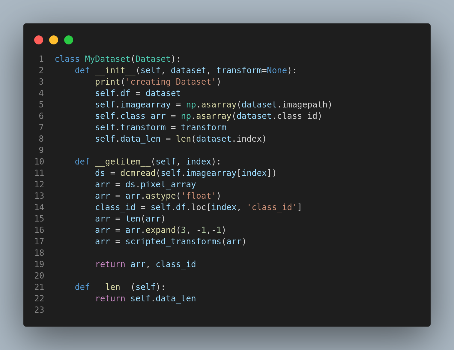 So now that we took a minute to see the data structure and the image themselves, we need to create a dataset and a dataloader. Think of the dataset as the truck that is connected to a dataloader that acts as sort of a moving belt to transport the contents to be processed.We can create some classes for these concepts.