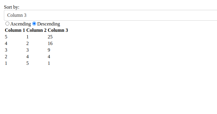 Here's an example that demonstrates how to create a simple sidebar that sorts data based on the values in a column: